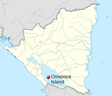 - Isla de Ometepe is an island in the middle of a lake, Lake Nicaragua, which were both created through volcanic activity. The island contains two volcanoes, one active, the other dormant or extinct. The island has become home to many tropical species.